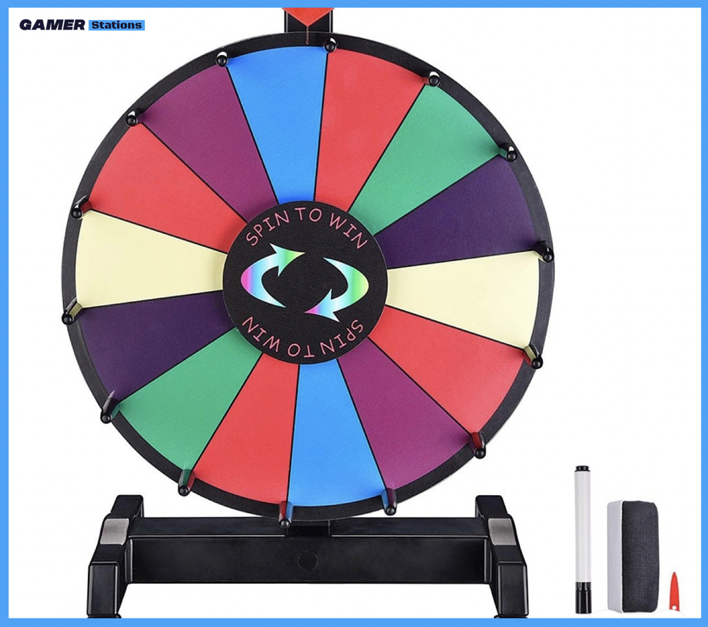 WinSpin 12” editable color prize wheel dry erase fortune spinning game carnival with tabletop stand 14 slot.
